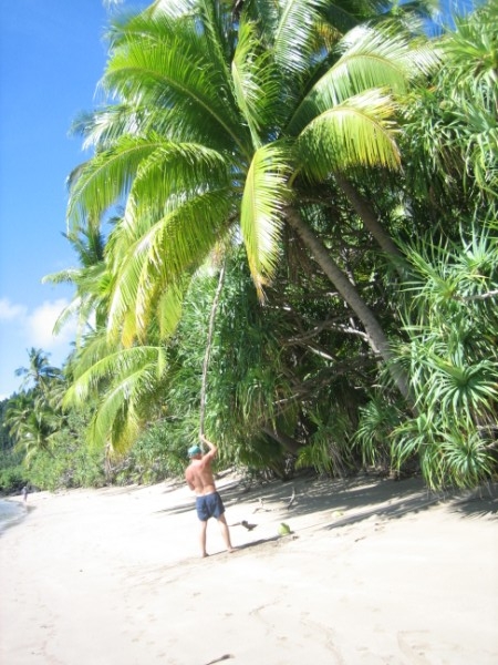 Am 26.04. um 09.15 warfen wir die Leinen los und passierten um 09.30 Uhr die geöffnete Brücke von der aus der nette Hafenmeister uns nochmals zuwinkte. Der Wind wehte aus S-SSW mit 3 Bft und so schloß sich eine schöne Nachtsegelei an. Am 27. um 10.35 Uhr waren die 84sm nach Virgin Gorda abgesegelt und um 11.00 Uhr waren wir in der Marina auf Virgin Gorda fest. Pro Nacht zahlt man hier 48 US Dollar, und da wir keine Millionäre sind ,haben wir heute Morgen die Marina verlassen, sind ein paar Meilen nach Norden gesegelt und liegen jetzt im Gordon Sound zusammen mit der Vektor vor Anker. Waren schon im Wasser und haben ausgiebig gebadet, ich säubere dann auch immer das Unterwasserschiff.Leider haben wir heute einen Riss im Auspuff festgestellt, eine Schweißnaht hat sich geöffnet und etwas Wasser tritt aus wenn der Motor läuft. Wann wie und wo wir diesen Schaden reparieren wissen wir noch nicht. Unsere Position: 18°30,1'N 64°23,2'W