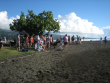 Geschrieben von Michael Schau am22.07.2015: Am 21.07.2015 warfen wir um 12.15 Uhr die Leinen los und segelten mit ablaufender Tide aus der Bucht von Brest. Um 15.00 Uhr drehte die Tide und mit dem auflaufenden Wasser drehten wir in den Englischen Kanal ein. Während der ganzen Reise kam der Wind aus SW mit einer Stärke von nie mehr als 2 Bft. Trotzdem machten wir mit dem Strom über längere Zeit 6 kn Fahrt. In der Nacht, vor der Insel Ile de Batz war dann der Spaß vorbei, der Strom kam jetzt gegenan und unsere Fahrt ging gegen 0. Als dann die Tide wieder drehte, ging es, immer noch mit Wind SW 2 Bft flott weiter und um 10.00 Uhr am 22.07 2015 starteten wir den Motor und waren um 10.20 Uhr in der Marina in Trebeurden fest. Dieses ist ein typischer Hafen der Bretagne. Die Einfahrt und Zufahrt des Hafens fällt bei Ebbe total trocken durch ein Süll, welches man nur bei einem gewissen Wasserstand passieren kann, bleibt im Hafen genügend Wasser, damit die dort liegenden Schiffe immer schwimmen. Unsere Position: 48°46,2'N 3°35,1'W Gestern Abend lief eine ganze Flotte holländischer Boote ein. Ich hatte eine nette Unterhaltung mit einem der Skipper. Er erzählte mir, sie wollten alle zur Belle Ile in der Biskaya und dann an der englischen Südküste zurück nach Holland - eine schöne Sommerreise. Sie haben aber von Holland schon 5 Wochen hierher gebraucht, da das Wetter durchgehend schlecht war. 24.07.2015 Eingeweht - Seit gestern ziehen 2 Tiefdruckgebiete über uns hinweg. Regen, starker Wind, der Sturm kommt noch - wir müssen warten, was nicht schwer ist, da wir hier im Hafen sicher liegen. Seit gestern bullert unser Reflex-Ofen und im Boot ist es mollig warm. Hier ein Auszug aus dem heutigen Wetterbericht: Low just W of Fitzroy (das ist das Wettergebiet westl. des Englischen Kanals) 1008 expected southern Plymouth 1002 by Midday tomorrow. Portland, Plymouth (das ist unser Wettergebiet) variable 4 becomming cyclonic mainly NE 5 to 7, Gale 8 in Plymouth. Da gehen wir doch besser zum Bäcker und holen uns ein leckeres Stück Kuchen. 31.07.2015 Nachdem wir fast eine Woche in Trebeurden gelegen hatten und ein Sturmtief nach dem anderen über uns hinweg gezogen war, legten wir endlich am 28.07.2015 um 07.00 Uhr ab. Bei noch sehr starkem Wind ging es flott Richtung Guernsey, wo wir abends genau bei Stauwasser ankamen und um 21.20 Uhr vor St. Peter Port ankerten und anschließend sofort in die Kojen fielen. Am nächsten Morgen, den 29.07. ging es mit der Tide um 07.00 Uhr Anker auf Richtung Alderney/Cherbourg. Um 12.00 Uhr war der Spaß vorbei, das Boot machte trotz des starken achterlichen Windes keine Fahrt mehr voraus; im Gegenteil, wir machten in der hohen, achterlichen, steilen, sich laufend brechenden See Fahrt über den Achtersteven, denn wir hatten jetzt den vollen Tidenstrom gegenan. Drei lange Stunden mussten wir ausharren. Endlich um 15.00 Uhr ging es langsam voran und es dauerte nicht lange und mit 8 kn Fahrt näherten wir uns rasch Cherbourg, wo wir um 20.45 Uhr an einem Ponton sehr erschöpft festmachten. Am nächsten Morgen, den 30.07.2015, warfen wir um 06.05 Uhr die Leinen los und seglten, die ersten 40 Min. noch unter Motor Richtung St. Vaast in der Normandie, wo unsere französischen Freunde von der Alioth ( mit Ihnen waren wir in Patagonien mehrmals zusammen) schon seit Tage auf uns warteten. Aber diese kleine Reise hatte es in sich! Da wir es durch segeln nicht schafften vor Schließung der Schleuse rechtzeitig anzukommen, starteten wir den Motor. Schnell stellte sich heraus, dass der defekte Niro-Auspuff ein sehr großes Loch hatte und sehr viel Wasser in die Bilge strömte. Ich konnte auch nichts reparieren, da wir uns zu dicht unter Land befanden. Aber wir haben eine Whale Gusher Handpumpe mit der ich locker die Bilge trocken halten konnte. Nach eine halben Stunde riss jedoch der Gummibalg und die Pumpe war nutzlos. Unsere elekrische Bilgepumpe lief auch, aber es stellte sich heraus, dass die Durchflußlöcher in den Spanten viel zu klein sind. Also startete ich unsere elektrische Impeller-Lenzpumpe, welche ich vor einem Jahr überholt hatte. Sie startet sofort, förderte aber kein Wasser. Jetzt erinnerte ich mich an den alten Spruch "die beste Lenzpumpe ist ein Mann mit einem Eimer" und tatsächlich gelang es, mir den Wasserstand im Maschinenraum konstant zu halten, zwischendurch nahm ich noch die Segel weg und machte die Leinen und Fender klar - das war echter Sport!!!! um 11.45 Uhr am 30.07. waren wir endlich in St. Vaast fest, wo unser Freund Dominique uns schon erwartete. Seit einiger Zeit haben wir ein ganz wenig Wasser in der Bilge im Maschinenraum, ich konnte aber das Leck nicht finden. Da die Bilge auf Grund des gestrigen Abenteuers ölig ist, sah ich heute Morgen ein feines Rinnsal aus einer Schweißnaht entweichen. Das Boot kam sofort an Land und jetzt werden folgende Reparaturen ausgeführt. Auspuff Instand setzten, Tank reinigen, neue Separ-Doppelfilteranlage einbauen, Schweißnaht-Lecksuche und schweißen. Wir liegen hier in dem schönen Städtchen St. Vaast und fühlen uns hier sehr wohl, in der Austernbar der Fischereigenossenschaft nur ein paar Meter vom Boot entfernt, ließ ich mich gestern gleich nieder. Die große Fischereiflotte bringt laufend frischen Fisch und wir haben viel Spaß mit der Crew von der Alioth, wir sollen auch unbedingt im Haus von Dominique schlafen, was wir auch machen werden. Unsere Position: 49°35,3'N 1°15,9'W. 06.08.2015 Seitdem wir an Land stehen, wohnen wir bei unseren Freunden Dominique und Arielle. Das schloßähnliche Anwesen nimmt uns ganz gefangen. Die Haupthalle hat ungefähr den Grundriss unseres Hauses und wieviel Zimmer es gibt, wissen wir nicht. In dem wunderschönen Park gibt es neben Obstbäumen herrliche, hohe Palmen sowie einen großen Wallnußbaum. Vor einigen Tagen waren wir bei Christiane und Luc in Barfleur eingeladen ( alle vier zusammen bilden die Crew der SY ALIOTH). Schon wieder standen wir vor eine