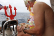 Heute, am 25.05., ist Queens Birthday und die gesamte Bevölkerung begeht diesen Feiertag mit einem großen Fest. Heute Morgen wurde hier in St. George der Halbmaraton nach Hamilton gestartet. Wir haben uns natürlich die Vorbereitungen und den Start angesehen. Anschließend fuhren wir mit dem Bus in die Hauptstadt Hamilton, wo ab 13.30 Uhr die große Parade stattfand. Schon die Bustour war sehr interessant, überall türkisfarbenes Wasser, kleine Yachthäfen sowie knallbunte Häuser. Wir suchten uns ein Plätzchen, um gut sehen zu können, und dann ging es los. Zuerst fuhr der Gouverneur, flankiert durch eine Motorradstaffel, huldvoll winkend in einem BMW an uns vorbei. Dann folgte knatternd ein riesiges Aufgebot an Harley Davidson Motorrädern. Anschließend hörten wir laute Militärmusik und dann kamen sie: Die Militärkapelle des Bermuda Regiments in ihren historischen Uniformen. Das Volk, welches sich in mitgebrachten Klappstühlen am Straßenrand eingerichtet hatte, jubelte. Ich dachte nur: Ja, das Empire lebt, alles feiert fröhlich Queens Birthday. Es folgten nun unzählige Tanzgruppen, oft bestehend aus fröhlichen Kindern, und wir hatten den Eindruck, das das Tanzen hier sehr gefördert wird. Irgendwann am späten Nachmittag waren wir wieder an Bord.