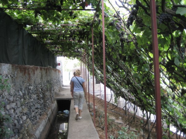 Wie schön ist diese Insel!  Am Donnertsag den 18.06.2015 fuhr Denis uns , Wolfgang, Hans und mich,zu einem Ausgangspunkt eines Wnderweges und wir marschierten los. Die  Landscgaft üppig grün, oft stehen fette Kühe auf den durch Steinmauern eingegrenzten Mauern. 2 große, mit Wasser vollgelaufene Calderaseen  passierten wir. Der eine grassgrün. Zuerst bewegten wir uns in einer Heidelandschaft später dann nahm die Wanderung mehr den Charakter einer Expedition an, denn wir hatten uns stundenlang auf einer Hochebene bewegt und mußten jetzt ca. 400 Meter über Natursteintreppen und kurzen Hohlwegen den Abstieg zur Küste bewältigen. Ziemlich angeschlagen aber happy kamen wir in der Ortschaft Faja Grande an, wo wir uns erstmal einen Drink genehmigten.